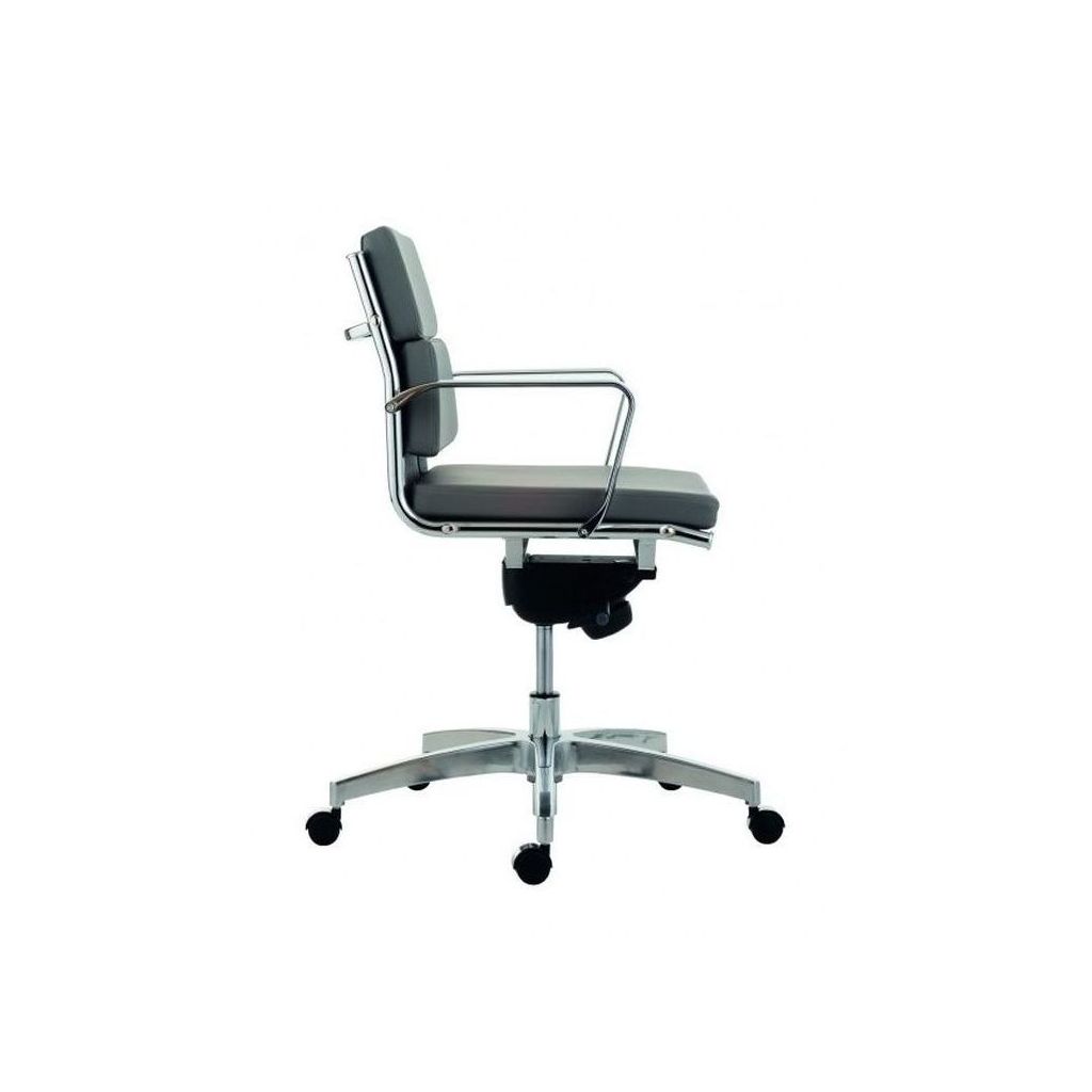 Luxusné kancelárske kreslo Antares 8850 KASE - SOFT LOW BACK s nižším operadlom, oceľový chrómovaný rám s podrúčkami, hojdací mechanizmus s nastavením sily protiváhy a aretáciou v základnej pozícii, za príplatok mechanizmus Multiblok s niekoľkonásobnou aretáciou a predsunutou osou hojdania pre vyšší komfort, hliníková leštená báza, nosnosť 120 kg, záruka 36 mesiacov. Dodáva sa čalúnené kvalitnou koženkou alebo v pravej koži v rôznych farbách.