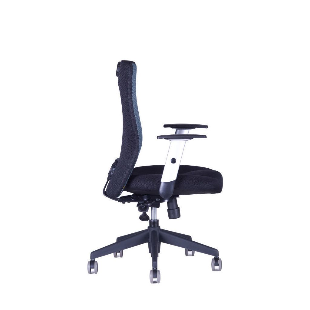 Kancelárska stolička čalúnená s vysokým operadlom. Synchrónny mechanizmus so 4 polohami blokovania. Nastavenie sily protiváhy- podľa telesnej hmotnosti. Výškové nastavenie sedáka. Anatomicky tvarovaný sedák. Obojstranne čalúnené operadlo samonosnou sieťovinou. Výškovo nastaviteľné podrúčky. Nosnosť 120 kg.