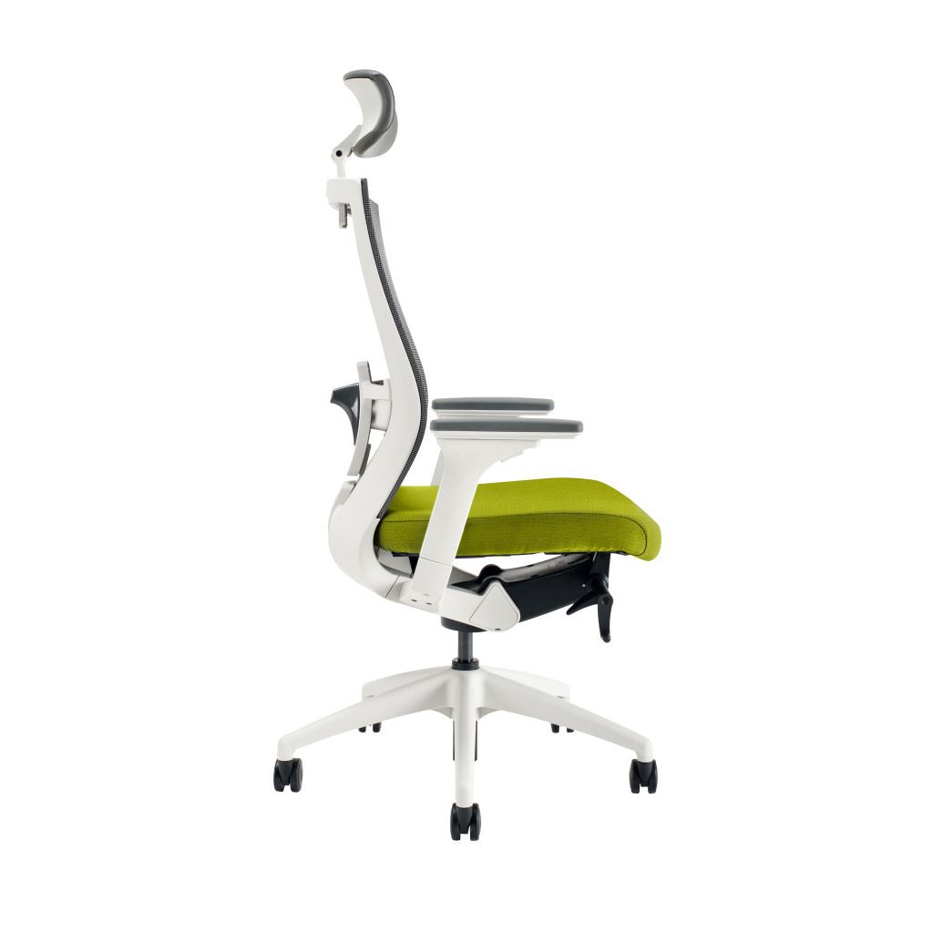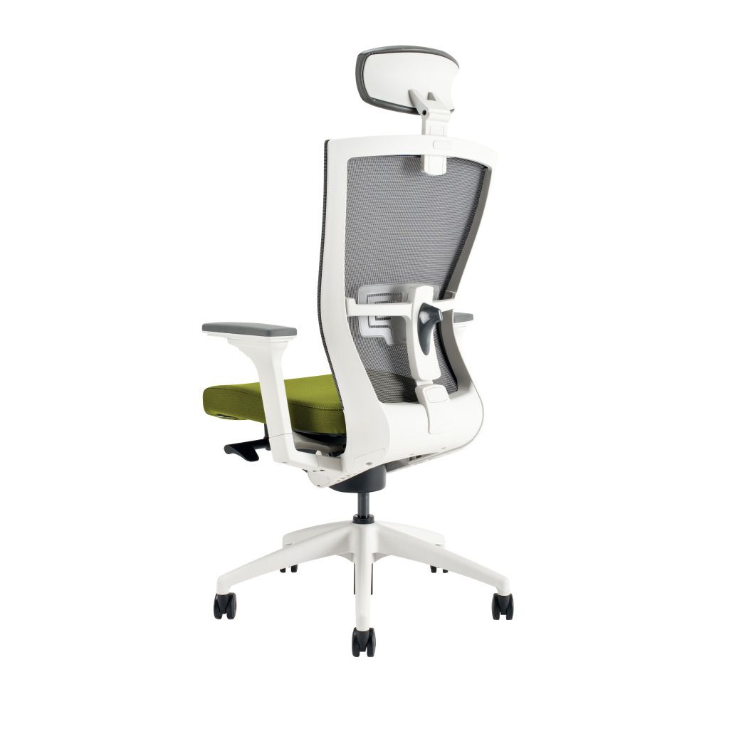 Pohodlnné kancelárske kreslo. Nastavenie výšky a uhla hlavovej opierky. Synchrónny mechanizmus bez obmedzenia polohy blokovania nastavenie výšky a hĺbky sedáka. Studená pena vo vnútri sedáka. Nastavenie náklonu sedáka, Nastavenie sily protiváhy podľa telesnej hmotnosti. Univerzálne kolieska na tvrdú podlahu aj koberec. Konštrukcia v bielom prevedení. Nosnosť 120 kg.