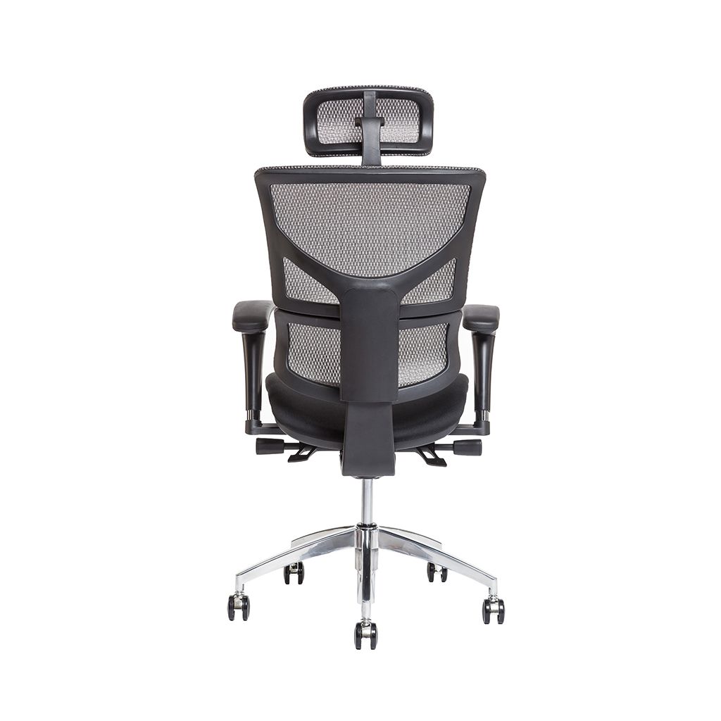 Stabilita a ergonómia je zabezpečená synchrónnym mechanizmom, ktorým meníte polohu sedáka a operáka zároveň. Sedák a operák môžete zafixovať v štyroch polohách. Výšku a hĺbku sedáka prispôsobíte svojej postave priamo na mieru a zaistíte tým správne podopreté nohy. Komfortným nastavením sily protiváhy podľa svojej hmotnosti zabezpečíte operák proti spätnému nárazu. Ergonomická aktívna opierka chrbta podporuje zdravý spôsob sedenia. Nastavením optimálnej výšky operáka v štyroch polohách zvolíte správnu polohu chrbta. Pre väčšie pohodlie si môžete prispôsobiť výšku a uhol hlavovej opierky. Stolička je čalúnená  na chrbáte samonosnou sieťovinou, ktorá zaisťuje celodenné vetranie chrbta. Sedák čalúnený čiernou látkou. Podľa potreby si nastavíte výšku, hĺbku, uhol a posun podrúčiek do strán. Kolieska so zmäkčeným povrchom umožňujú použitie na tvrdej podlahe aj kobercovej krytine. Nosnosť stoličky 135 kg, 3 roky záruka.