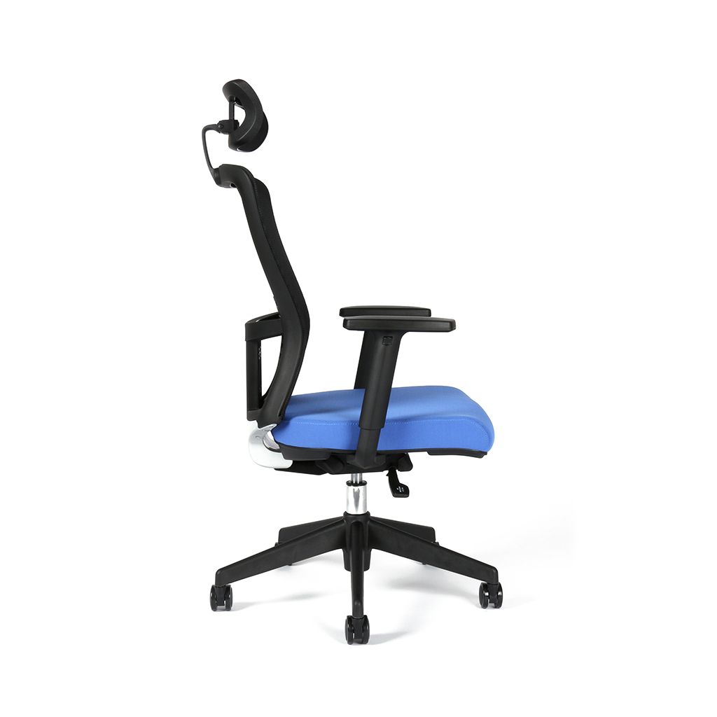 Kancelárska stolička THEMIS SP s nastaviteľným podhlavníkom, anatomicky tvarovaným sedákom a s priedušným operadlom.