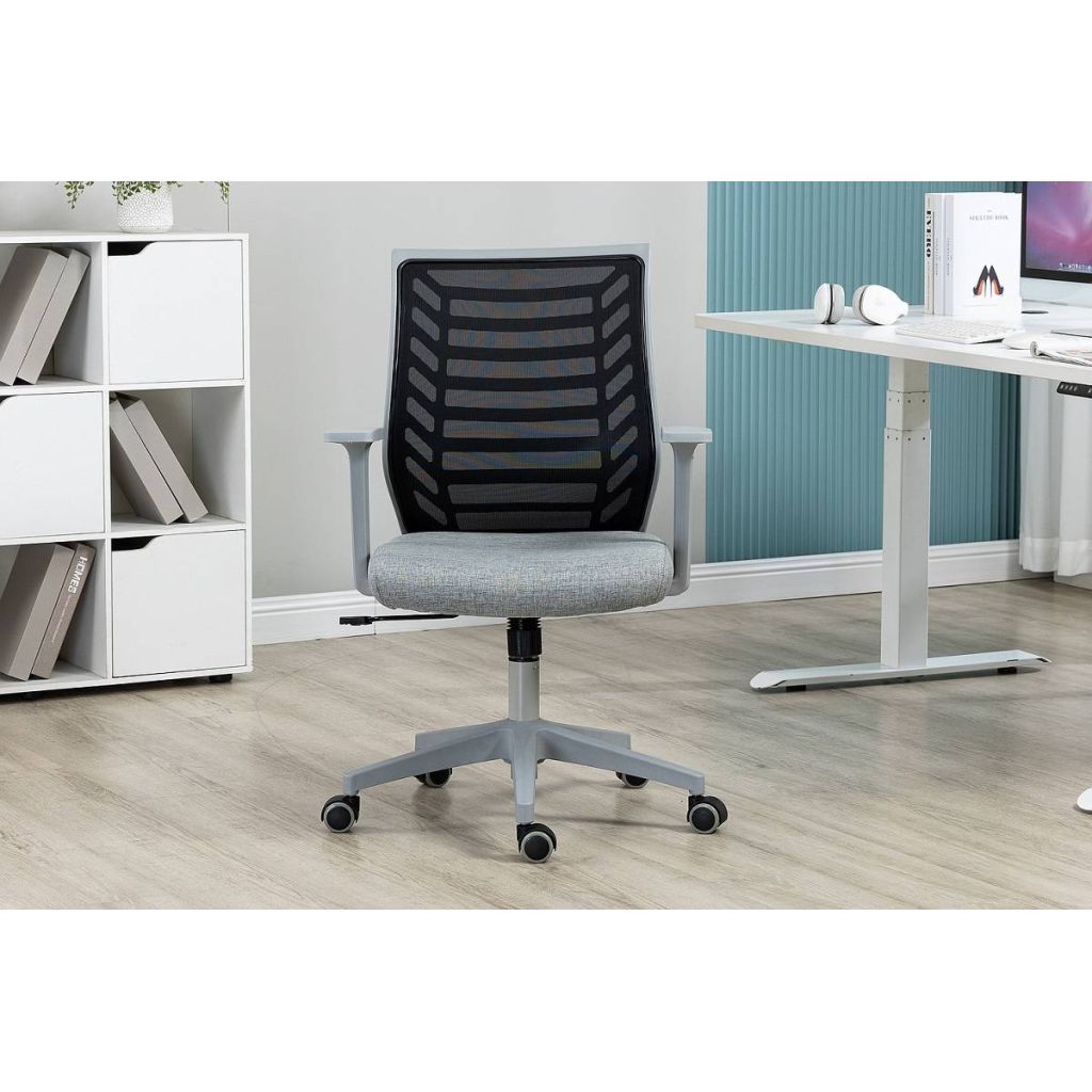 Otočná stolička Q-320 je ideálnym riešením pre pohodlie kancelárskych pracovníkov a študentov. Je ergonomická a má moderný dizajn. Operadlo kresla je vyrobené zo vzdušnej sieťoviny, čo zabezpečuje optimálnu cirkuláciu vzduchu. Chrbtová opierka je tvarovaná tak, aby sa dokonale prispôsobovala prirodzenému zakriveniu chrbtice a poskytovala oporu tam, kde je to najviac potrebné. Pevné podrúčky poskytujú primeranú oporu pažiam a pomáhajú uvoľniť ruky, čo zlepšuje celkový komfort. Otočné kreslo Q-320 je vhodné pre moderné interiéry. Jeho originálny dizajn ho robí jedinečným dekoratívnym prvkom v kancelárii, študovni alebo študentskej izbe. Sieťovina a moderné línie dodávajú stoličke jedinečný šarm, ktorý oživí dizajn interiéru v modernom a loftovom štýle.