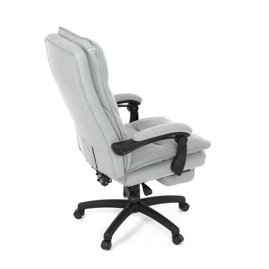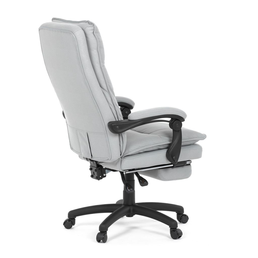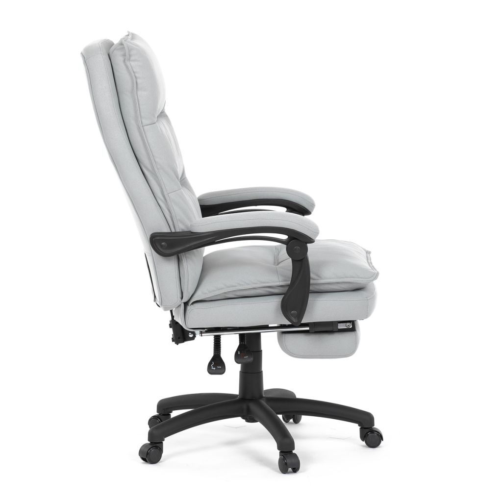 Luxusné kancelárske kreslo z kolekcie TOP manager. Jedná sa o moderné kreslo, navrhnuté pre náročnú kancelársku prácu alebo len relaxačné leňošenie. Poťah je striebornej hladké látky. Výplň dvojitého sedadla aj vysokého operadla je z veľmi kvalitnej PU peny. Kreslo je vybavené permanent contact mechanizmom s plynulou aretáciou. Pri vypnutí je možné sa s operadlom voľne pohupovať.