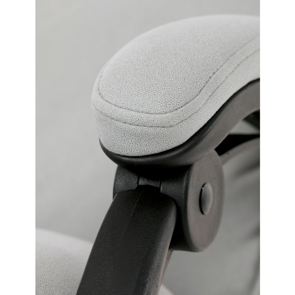 Podrúčky sú plastové, polstrované a potiahnuté striebornou látkou. Šírka je 8 cm, dĺžka ložnej plochy je úžasných 37 cm a výška 3 cm. Pri sklápaní sedadla sa pohybujú a kopírujú jeho pohyb a polohu. Vaše ruky budú mať pri odpočinku dokonalú a veľmi mäkkú podporu. Ako TOP vybavenie slúži výsuvná a výklopná polstrovaná podnožka. Nosnosť kresla je až 130 kg. Dodávané v demonte.