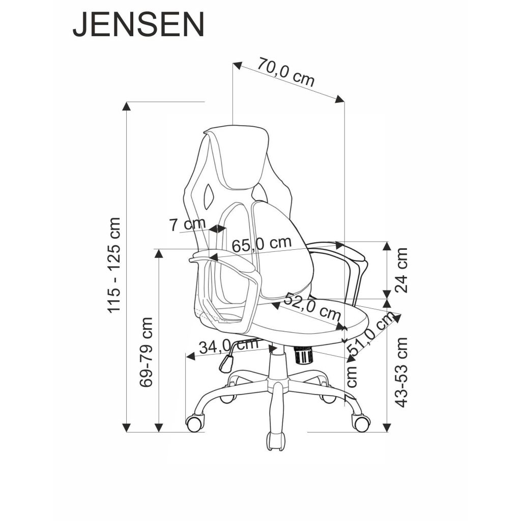 Ak hľadáte kreslo, ktoré vám poskytne pohodlie pri dlhých pracovných hodinách a zároveň dodá vášmu interiéru jedinečný štýl, model JENSEN je tou správnou voľbou. Jeho ergonomicky tvarované operadlo s výrazným prešívaním a kontrastné červené detaily podčiarkujú moderný dizajn, ktorý zaujme na prvý pohľad. Vďaka mechanizmu TILT si jednoducho nastavíte výšku sedadla podľa svojich potrieb a doprajete si uvoľnenie vďaka jemnej funkcii hojdania počas prestávok. Čalúnenie z odolnej látky v kombinácii troch farieb – čiernej, sivej a červenej – dodáva kreslu elegantný, ale zároveň dynamický charakter. Kreslo je vybavené otočnou základňou s kolieskami, čo umožňuje pohodlný pohyb bez vstávania od pracovného stola. JENSEN je ideálnou voľbou pre tých, ktorí od kancelárskeho nábytku očakávajú viac – funkčnosť spojenú s dizajnom a ergonómiou.