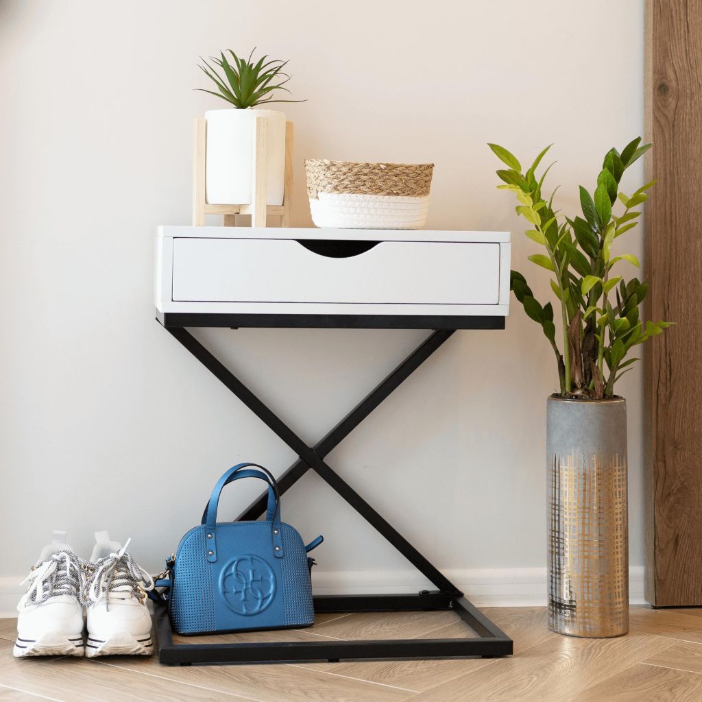 Príručný/nočný stolík, biela/čierna, VIRED