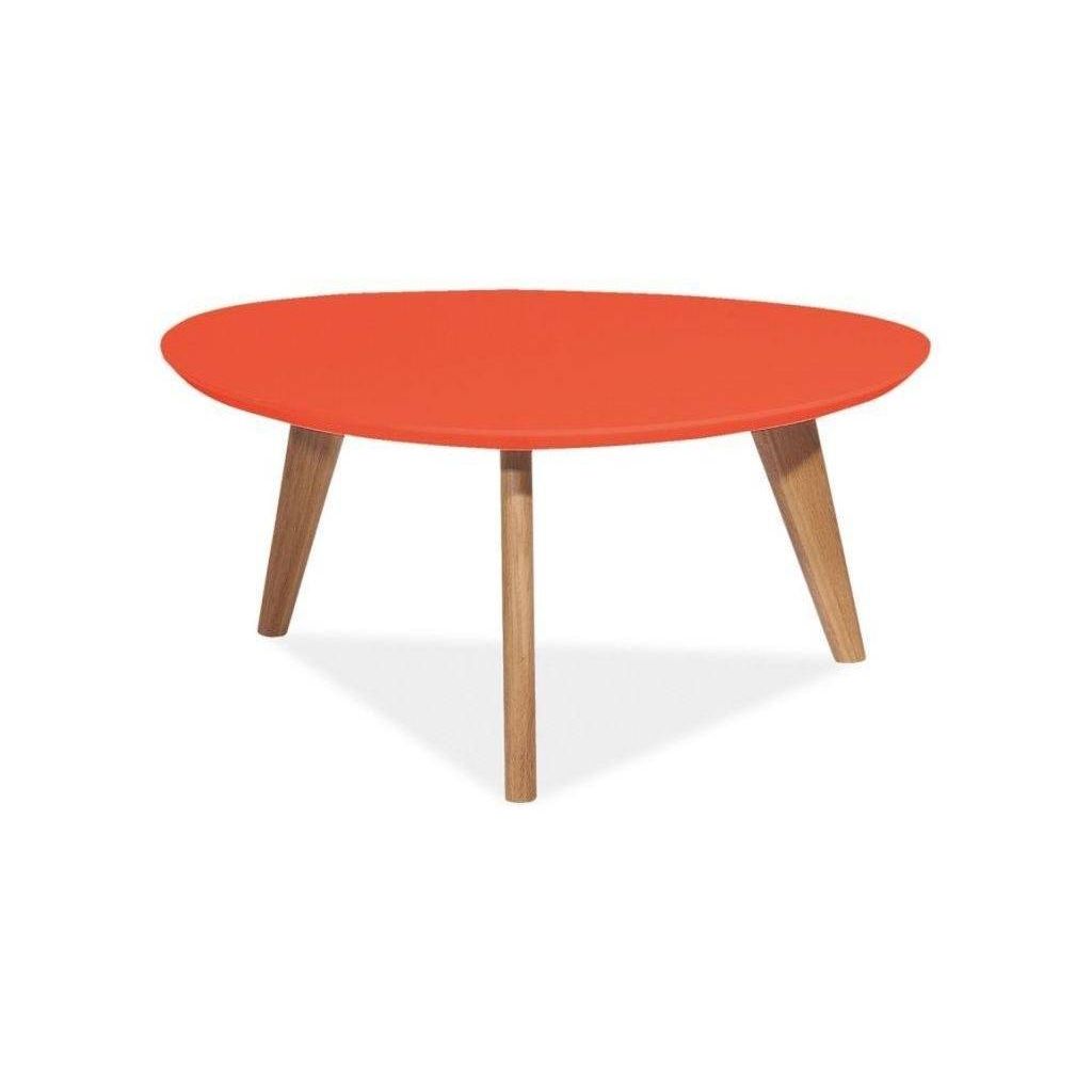 Elegantný a veľmi praktický konferenčný stolík v nezvyčajnom červenom štýle, predstavuje módny doplnok do spálne alebo obývačky. Drevené nohy zutúlnia každú miestnosť v dome alebo byte.