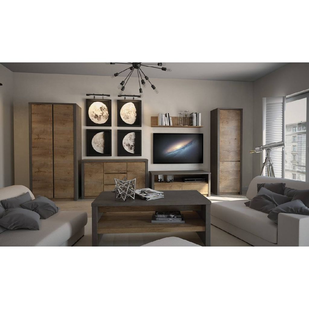 - Konferenčný stolík MONTANA ST sa skladá z troch zásuviek a dvoch skriniek s policami vo vnútri.