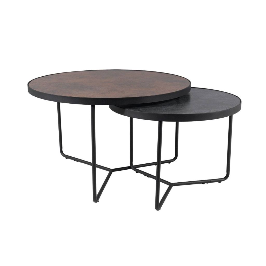 Set konferenčných stolíkov ITALIA STONE, čierna/hnedá s efektom kameňa