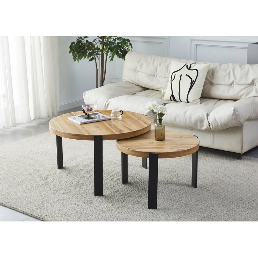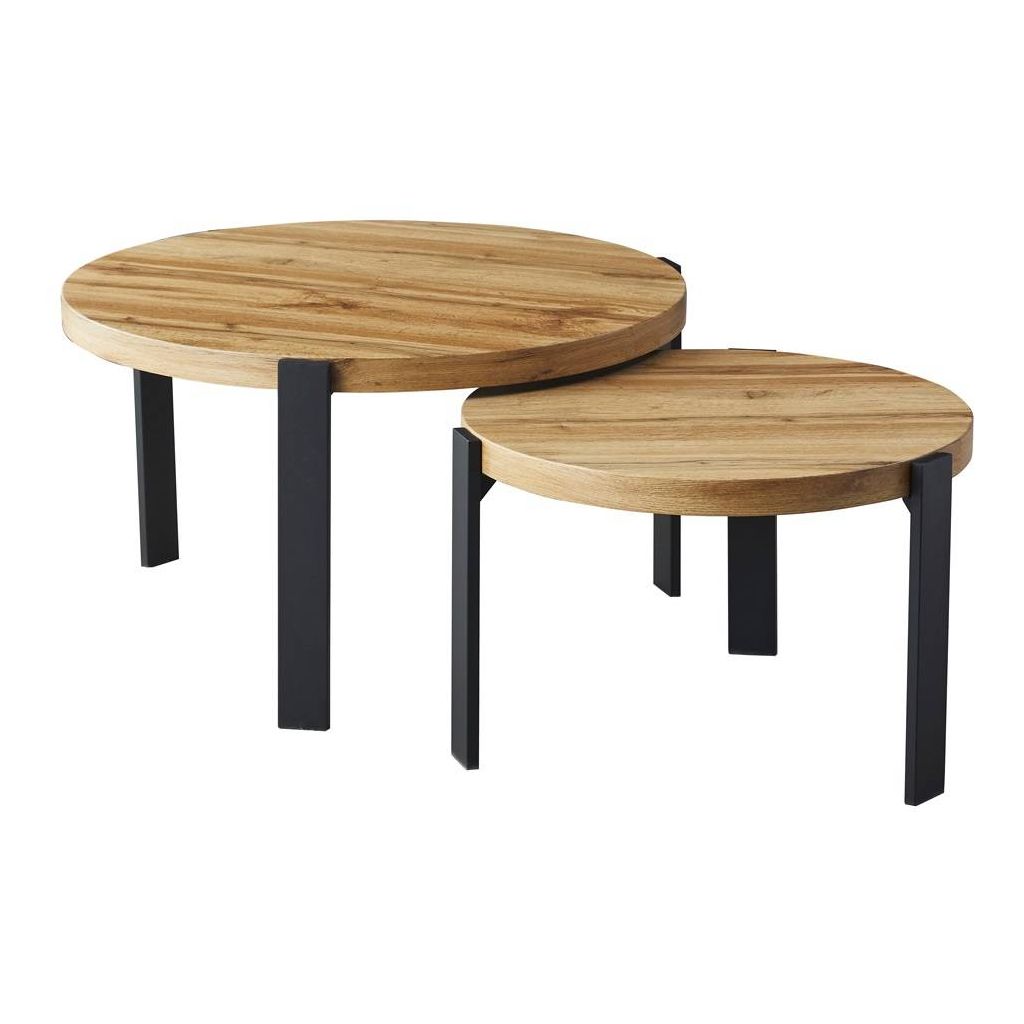 Set konferenčných stolíkov POLO, čierny mat/dub artisan