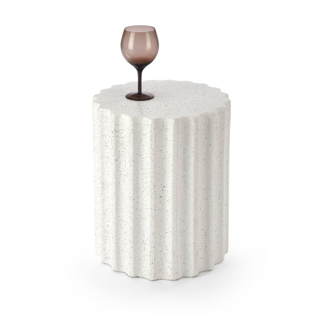 Konferenčný stolík FARA predstavuje podstatu moderného dizajnu – spája jemnosť so silou tvaru, ktorý dodáva každému interiéru jedinečnú atmosféru. Jeho ryhovaná, stĺpová forma, inšpirovaná klasickými stĺpmi, vytvára harmonický mix funkčnosti a dekoratívnosti. Stolík je vyrobený z odolného kompozitu na báze oxidu horečnatého, vďaka čomu je ideálny ako praktický doplnok do obývačky, ale aj ako dizajnový prvok do predsiene alebo spálne. Matné biele prevedenie zvýrazňuje moderný štýl, pričom kompaktné rozmery (priemer 41 cm) umožňujú jeho ľahké začlenenie do rôznych priestorov. Tento stolík je skvelou voľbou pre tých, ktorí ocenia neobvyklé detaily a chcú vniesť do svojho domova umeleckú atmosféru.