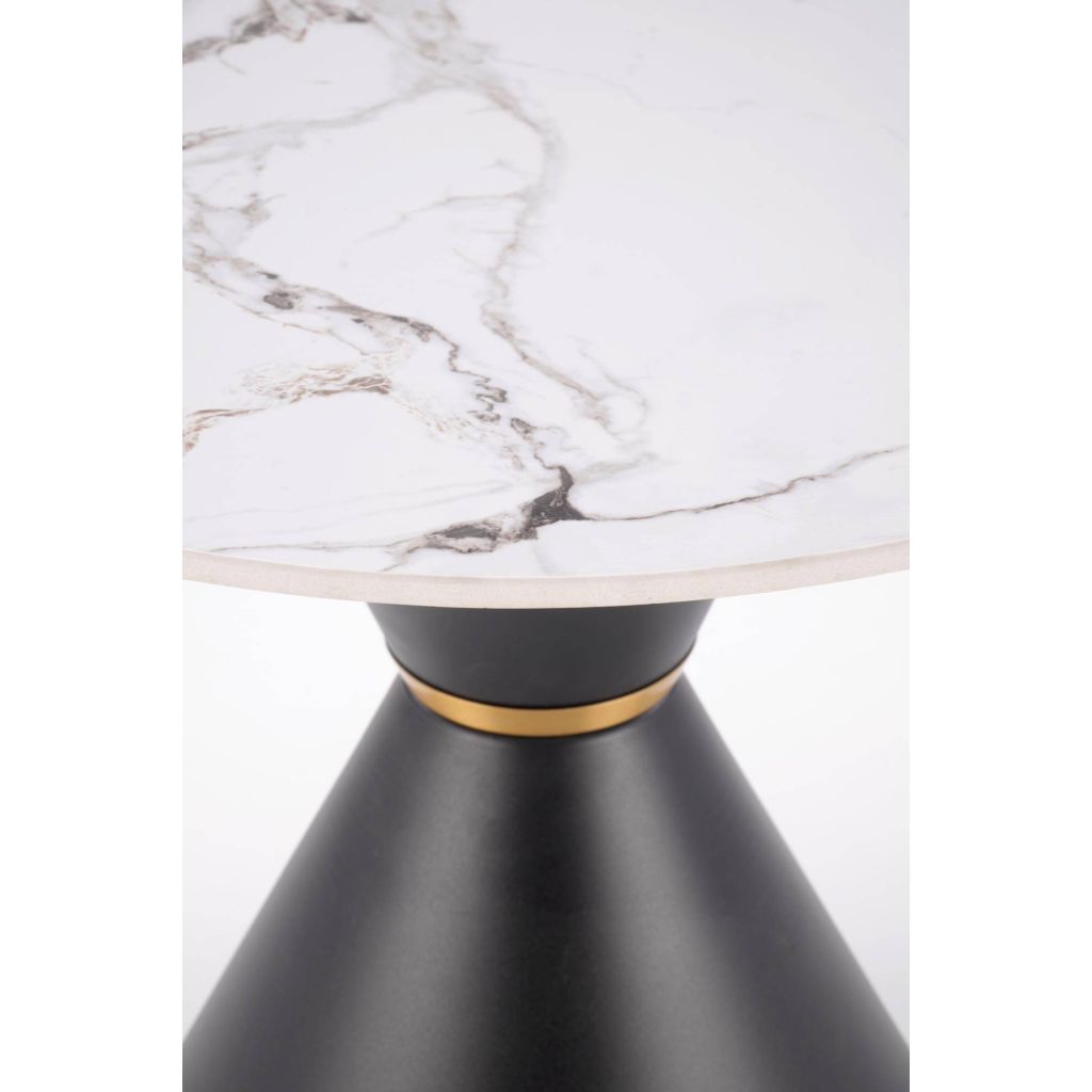 Ak hľadáš praktický a štýlový stolík, ktorý ti bude skvelým spoločníkom pri stretnutiach s priateľmi a zároveň zaujme moderným dizajnom, konferenčný stolík GORETTI S je tou správnou voľbou. Okrúhla doska z kvalitného sinterovaného kameňa v odtieni bieleho mramoru elegantne kontrastuje s čiernou, stabilnou podnožou, ktorú dopĺňa decentný zlatý akcent. Toto prepojenie materiálov a farieb vytvára pôsobivý a nadčasový vzhľad. Stolík GORETTI S výborne zapadne do interiérov zariadených v modernom, glamour alebo klasickom štýle, kde dodá nádych elegancie a jemnej noblesy.
