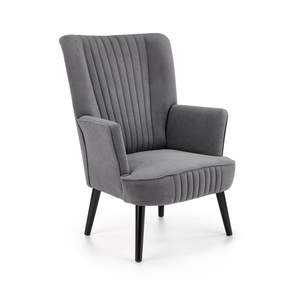 Kreslo DELGADO zaujme už na prvý pohľad svojím originálnym tvarom, výrazným prešívaním a luxusne pôsobiacim zamatovým poťahom Bluvel, ktorý dodáva interiéru nádych elegancie. Ide o dizajnový prvok, ktorý zároveň ponúka vysoký komfort sedenia, ideálny na každodenný oddych. Vyrobené z kvalitných materiálov, kreslo nielen výborne vyzerá, ale je aj príjemné na dotyk. Vysoké operadlo, jemne zaoblené línie a mäkký poťah zaručujú pohodlie pri sedení, zatiaľ čo čierne drevené nožičky dodávajú stabilitu a decentný kontrast.