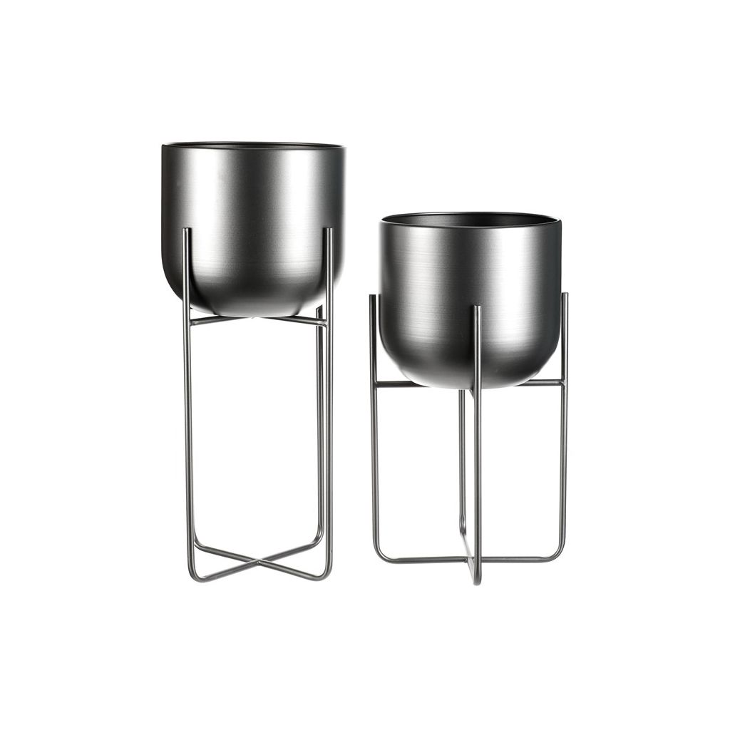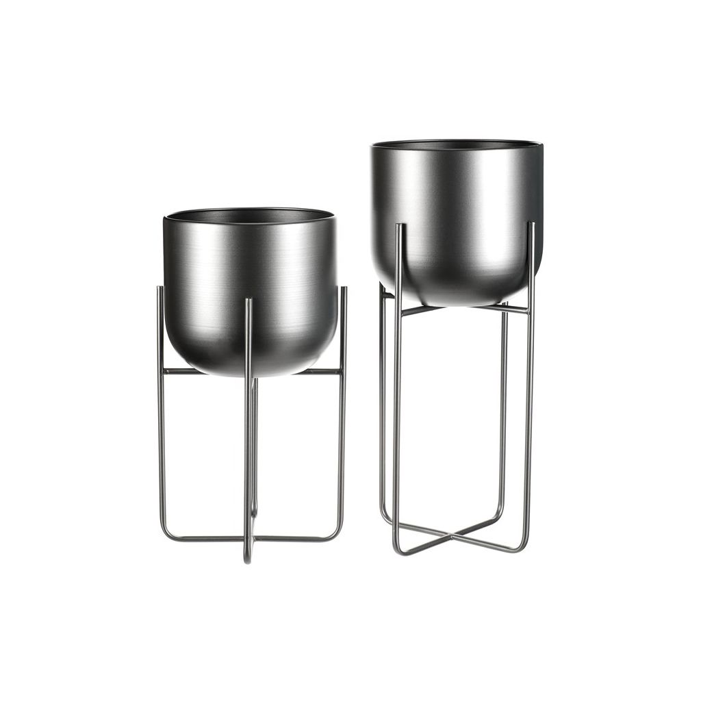 Set 2 kovových interiérových stojanov na kvety, kruhové, antracitový satin