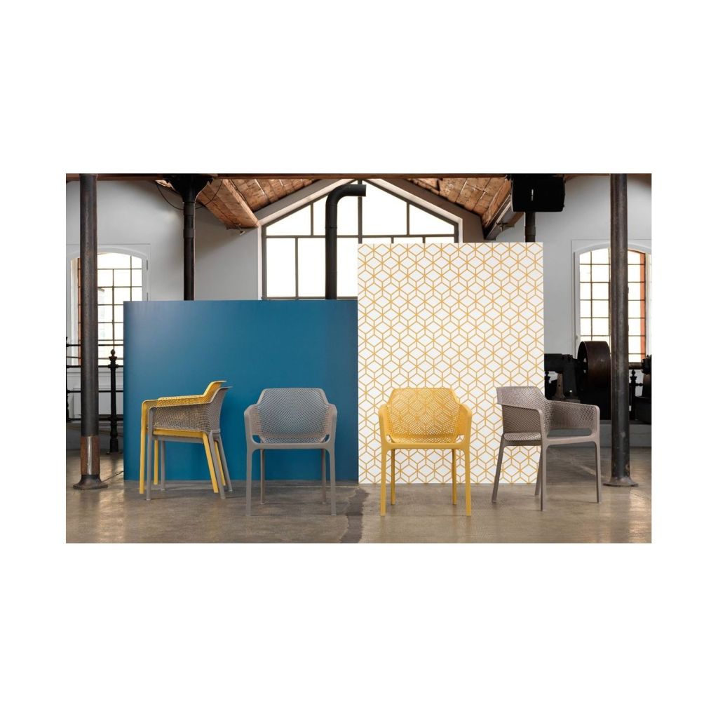 Moderné pohodlné, plastové kreslo NET. Materiál polypropylén zo skelným vláknom. Kreslo v prevedení: biela, holubica-tortora, antracit, žltá-salice, zelená-senape, st. ružová-corallo. STOHOVATEĽNÉ/umývateľné. Nosnosť 200 kg. Vhodné pre interiér aj exteriér.